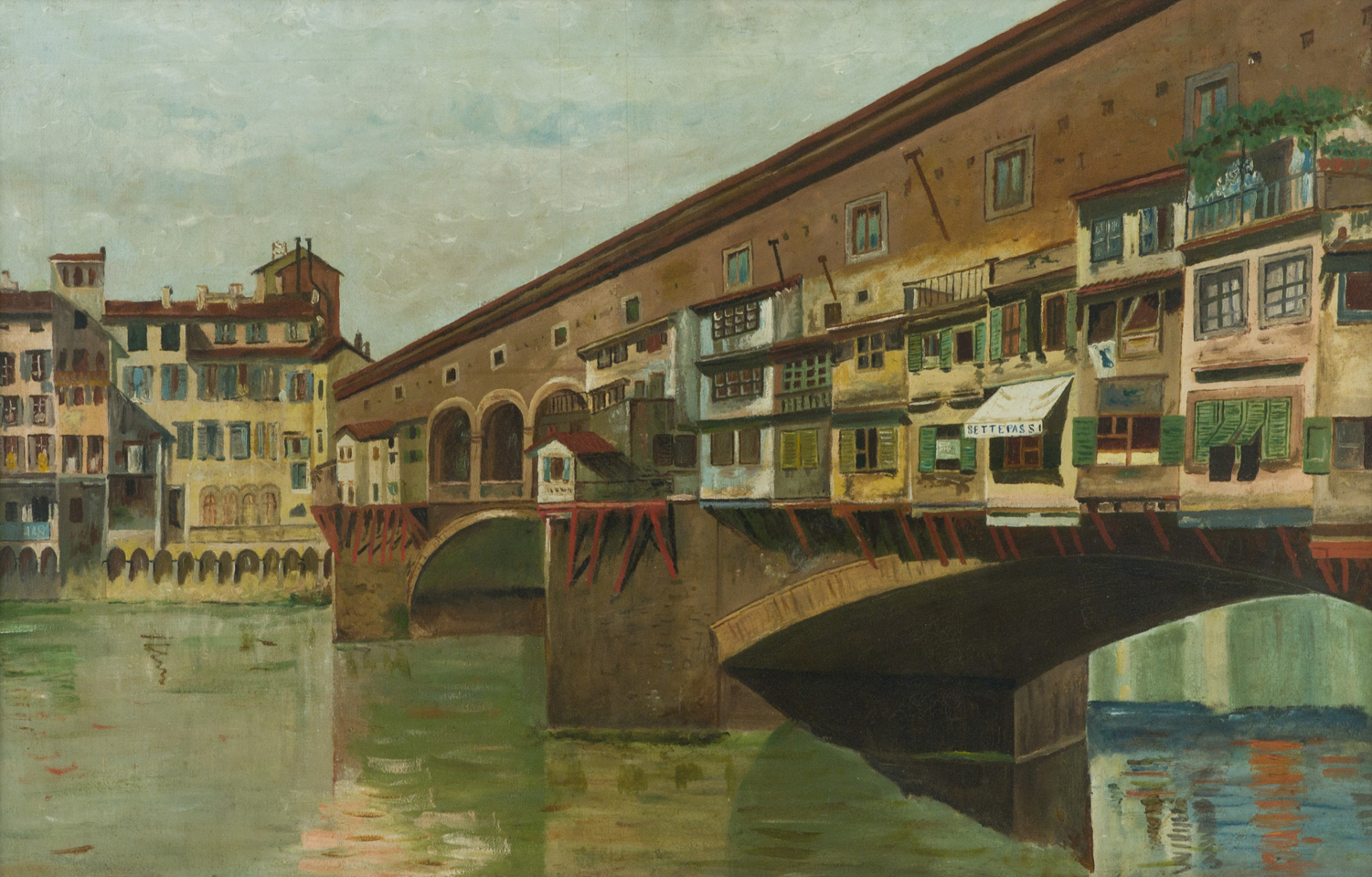 Micheli Ponte Vecchio Olio su tela, cm. 63x98 Sul verso: scritta "Micheli 1898".
