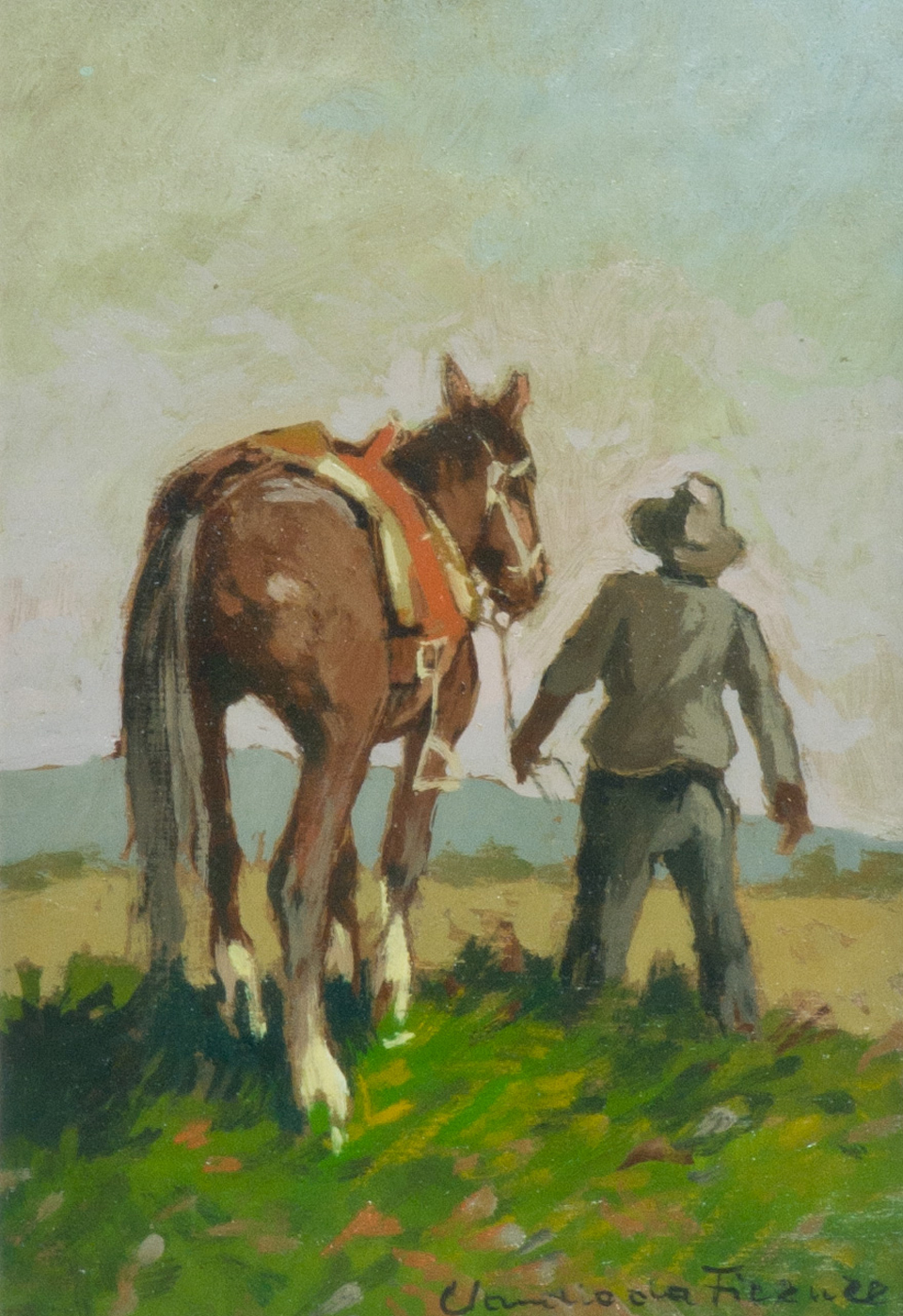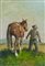 Claudio Da Firenze Buttero e cavallo Olio su tavola, cm. 22x15 Firmato in basso a destra.