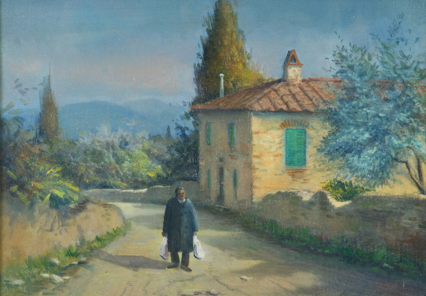Massimo Callossi Paesaggio con figura Olio su cartone telato, cm. 25x35 Firmato in basso a destra.