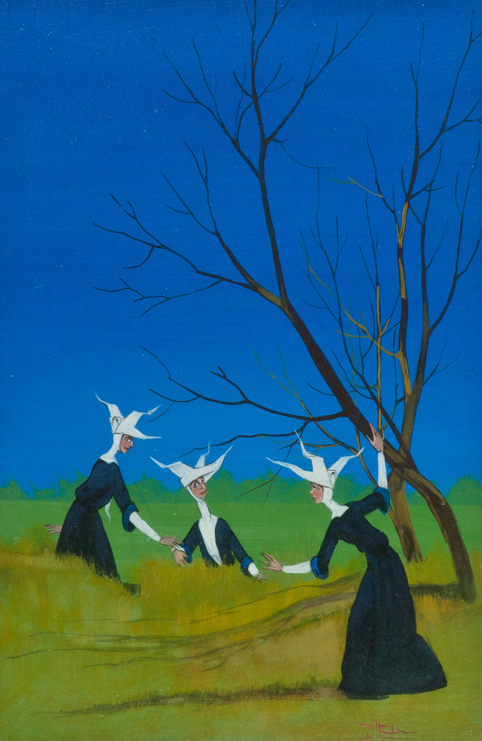 Mario D'Elia Monachine Olio su tela, cm. 45x30 Firmato in basso a destra.