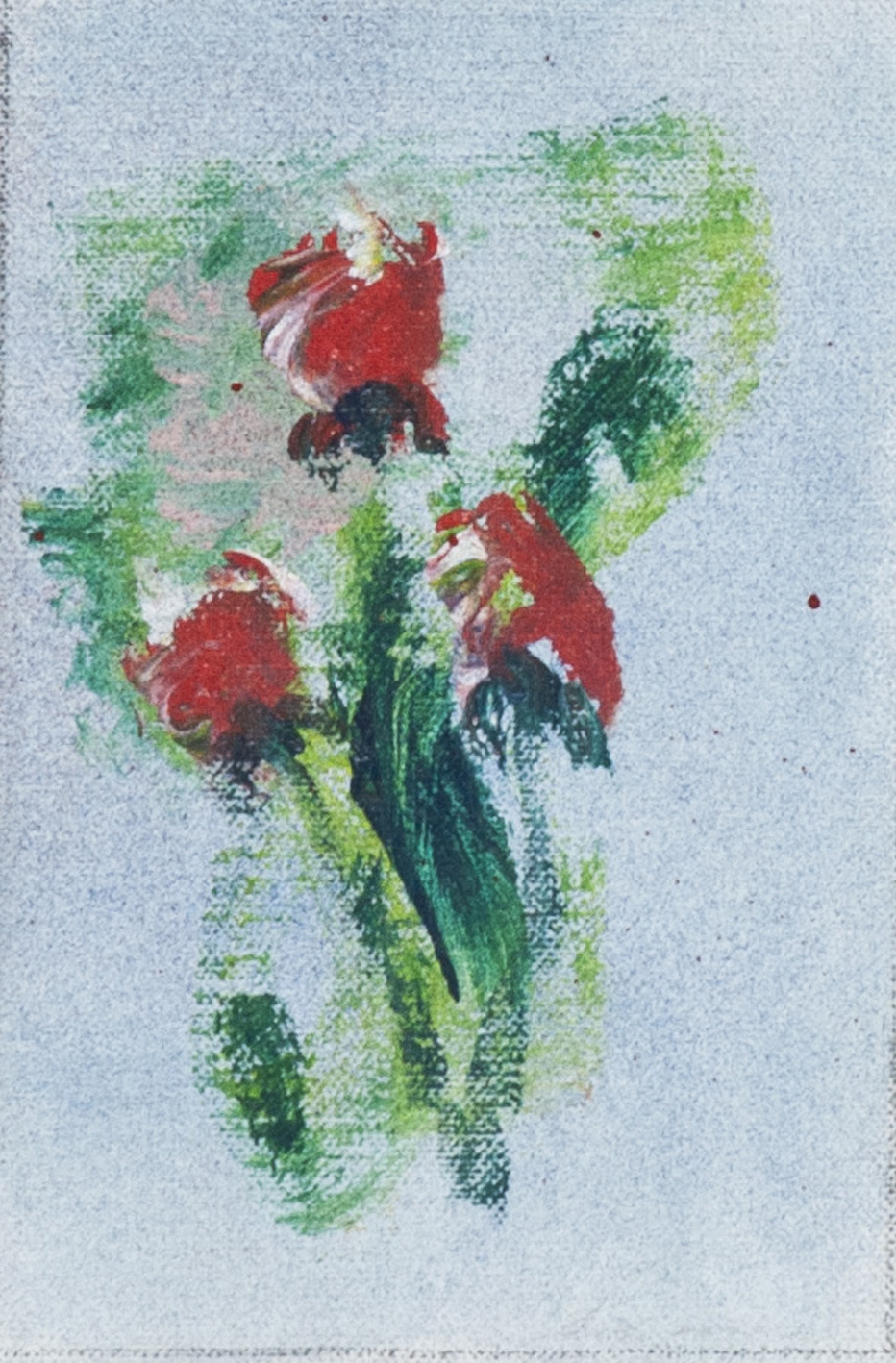 Ernesto Treccani Fiori Olio su tela, cm. 16x10 Firmato in basso a destra. Sul verso: firma. Autentica dell'Artista su foto.