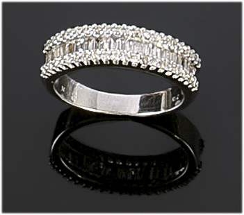 ANELLO Fedina in oro bianco con diamanti taglio brillante rotondo e baguette per complessivi ct 0,85 ca Peso gr. 3,7 Misura 21