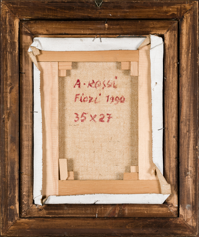 ATTILIO ROSSI (1909-1994)Fiori, 1990Olio su tela di jutacm 35x27Firma al...