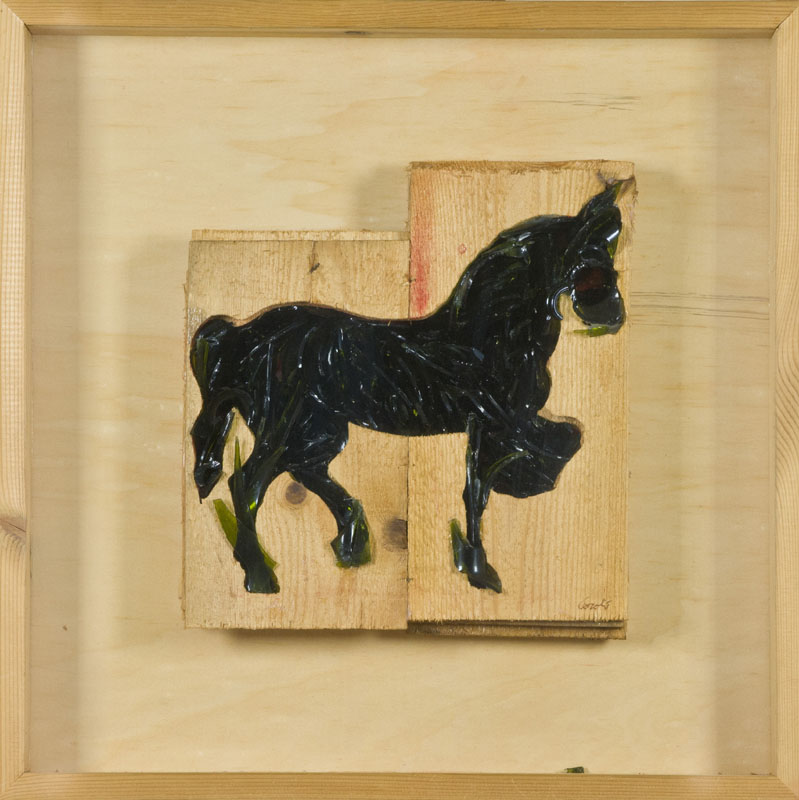 Mario Ceroli Cavallo Accumulazione di legno e vetro, cm. 54x54x7 Firmato in basso a destra. Autentica dell'Artista su foto.