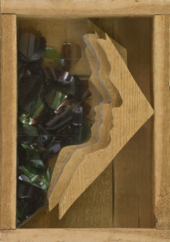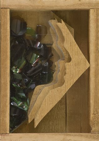 Mario Ceroli Profili Accumulazione di legno e vetro, cm. 40x28x9 Firmato in basso a destra. Autentica dell'Artista su foto.