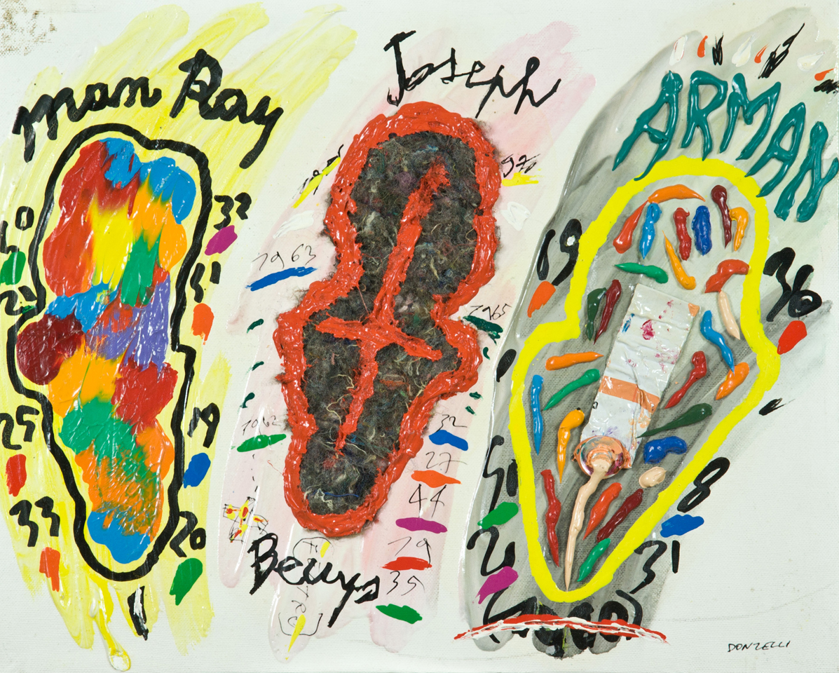 Bruno Donzelli Ormare, 1990 Tecnica mista e applicazioni su tela, cm. 40x50...