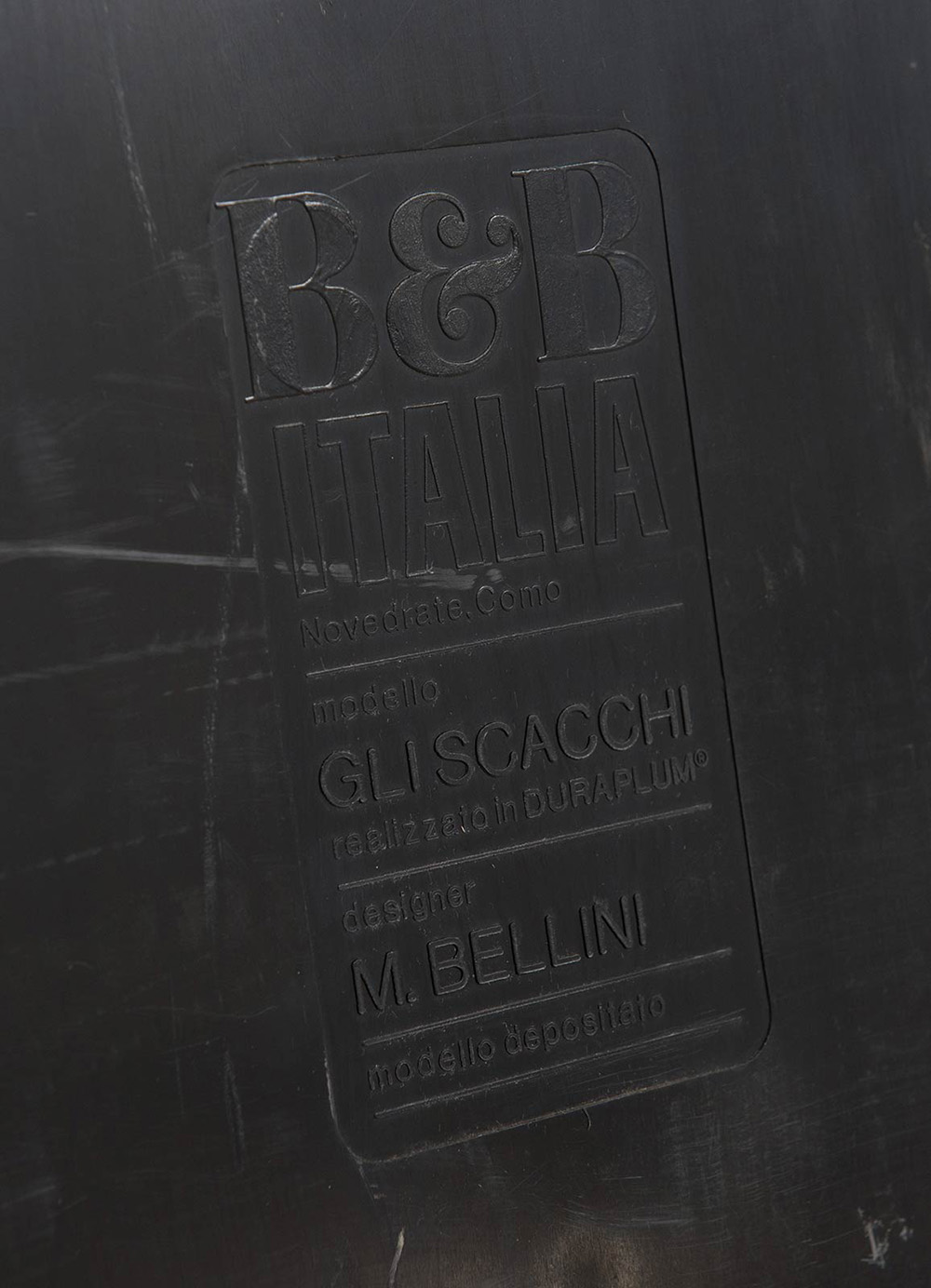 Mario Bellini (1935), “Gli Scacchi”, Produzione B&B, 1971. Tre tavoli bassi componibili di forma rettangolare, struttura in resina poliuretanica duraplum di colore nero, H cm 30x55x90 – 30x37x90 – 36x90x30 (usure e difetti) Bibliografia: G. Gramigna, “Repertorio del design italiano 1950 - 2000 per l'arredamento domestico”, Allemandi – 2007.