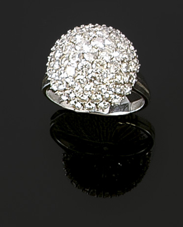 ANELLO Anello in oro bianco con sommità a cupola con pavé di diamanti taglio brillante rotondo per complessivi ct 2,80 ca Peso gr. 7,00 Misura 13