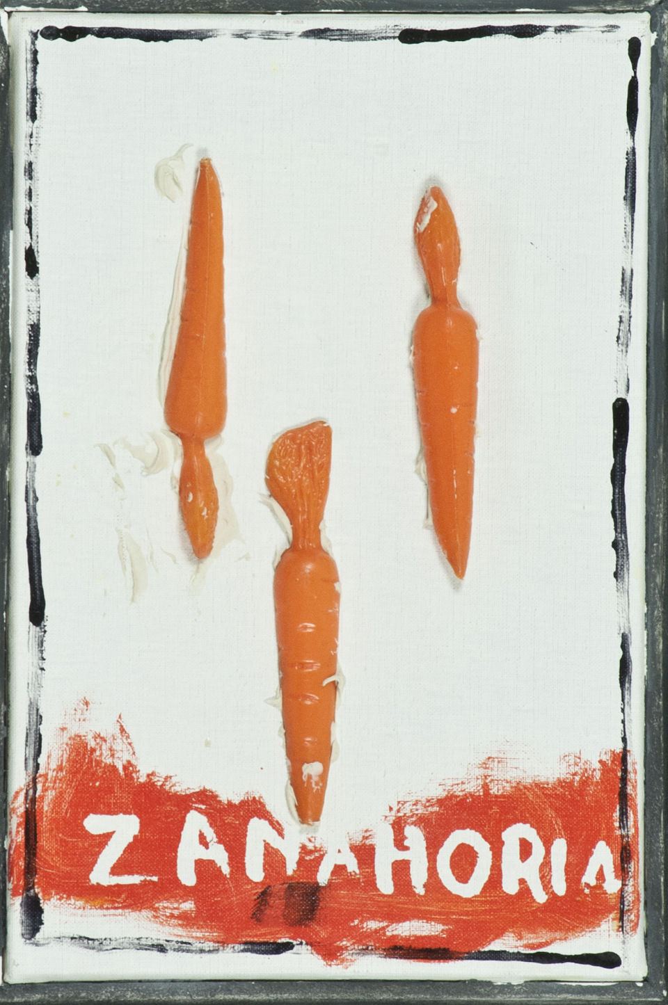 Mario Schifano Senza titolo, 1997 Smalto e oggetti su tela, cm. 30x20 Sul verso: firma; Etichetta e timbri "Archivio Generale dell'Opera pittorica di Mario Schifano, con Archivio n° 1613/97".