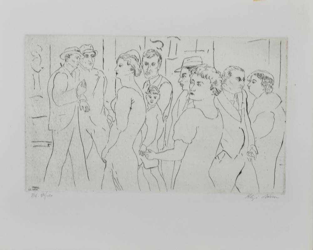 Aligi Sassu LA STRADA incisione su carta, cm 32x38 (lastra cm 19x31) esemplare 83 di 110 sul fronte: firma