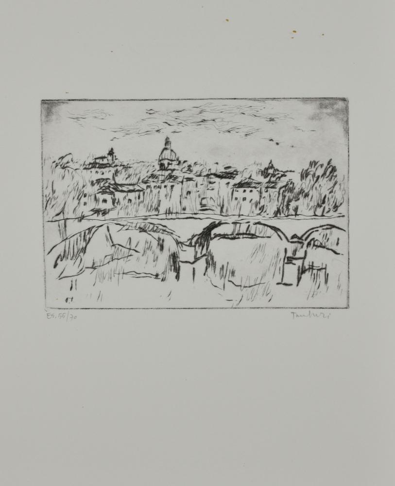 Orfeo Tamburi PONTE SUL TEVERE acquaforte su carta, cm 49x36 (lastra cm 17x25,5) esemplare 55 di 70 sul fronte: firma e timbro a secco "Luigi De Tullio Stampatore"
