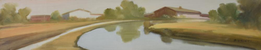Bruno Casati Riflessi sul Sile olio su tavola, cm 16x80 sul fronte: firma sul...