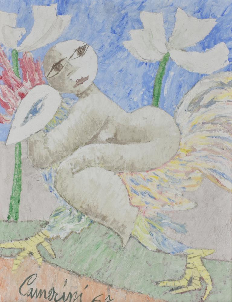 Lamberto Camerini GALLO-PPATA tecnica mista su masonite, cm 50x40 sul fronte: firma e data aul retro: firma e titolo eseguita nel 1967