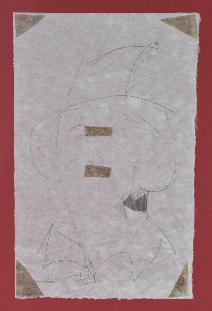 Amedeo Modigliani Testa di donna con cappello, 1915 litografia su carta di riso, cm 49x31 esemplare 32 su 150 sul fronte: firmata in lastra sul retro: etichetta con timbro dello Studio d'Arte Perna di Milano L'opera presenta tracce di nastro adesivo