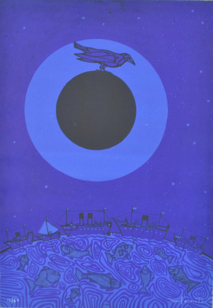 Francesco Casorati ECLISSI DI LUNA litografia su carta, cm 50x35 esemplare 14...