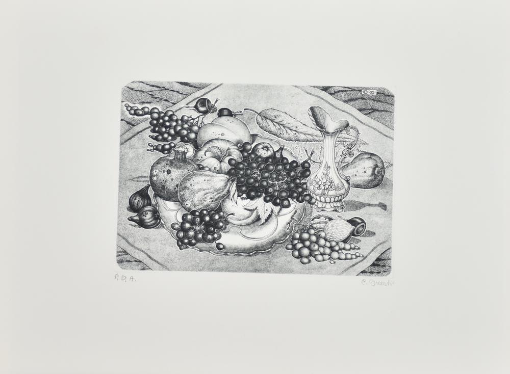 Carlo Onesti Natura morta incisione su carta, cm 39x53 (lastra cm 19,5x28,2) esemplare prova d'autore sul fronte: firma