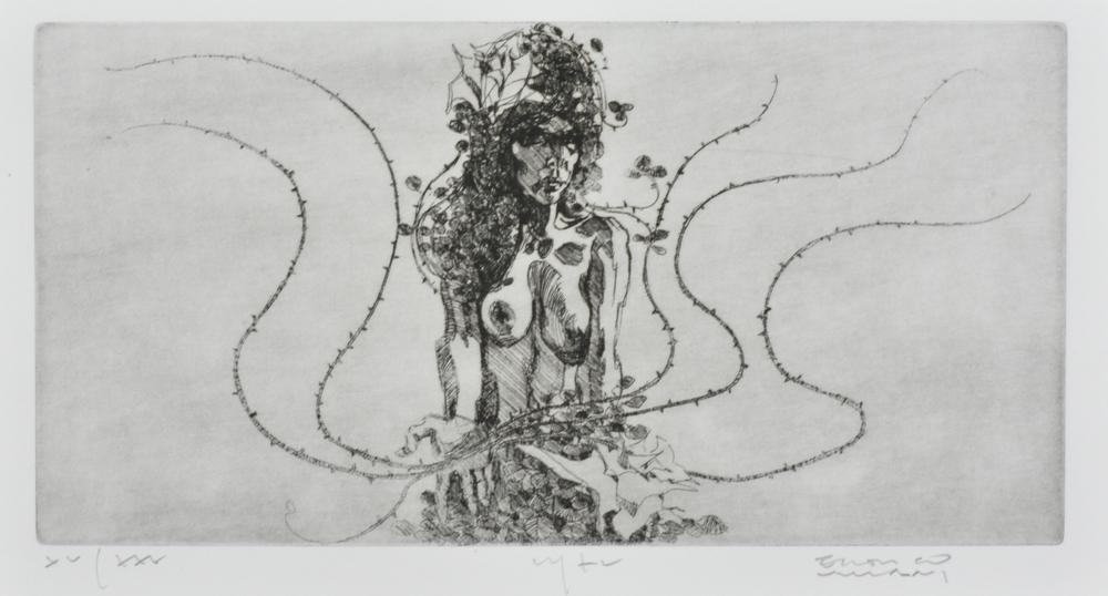 Enrico Villani LE ROSE DEL TUO CUORE incisione su carta, cm 34x40 (lastra cm 16x31,5) esemplare XV/XXX sul fronte: firma
