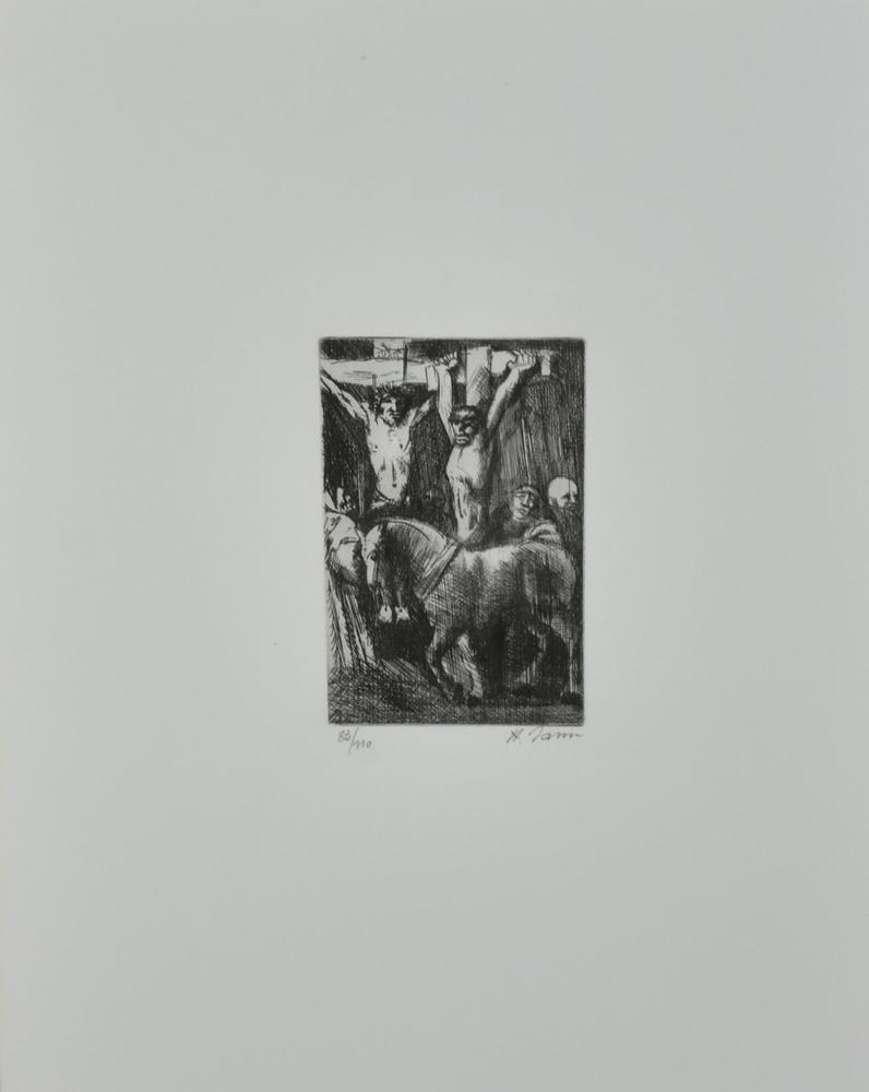 Aligi Sassu CROCIFISSIONE incisione su carta, cm 46x32 (lastra cm 13,4x9) esemplare 83 di 110 sul fronte: firma