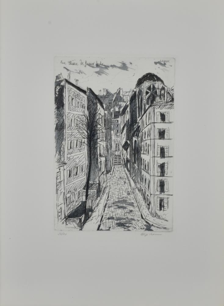 Aligi Sassu RUE ELISEE incisione su carta, cm 50x36 (lastra cm 28x19)...