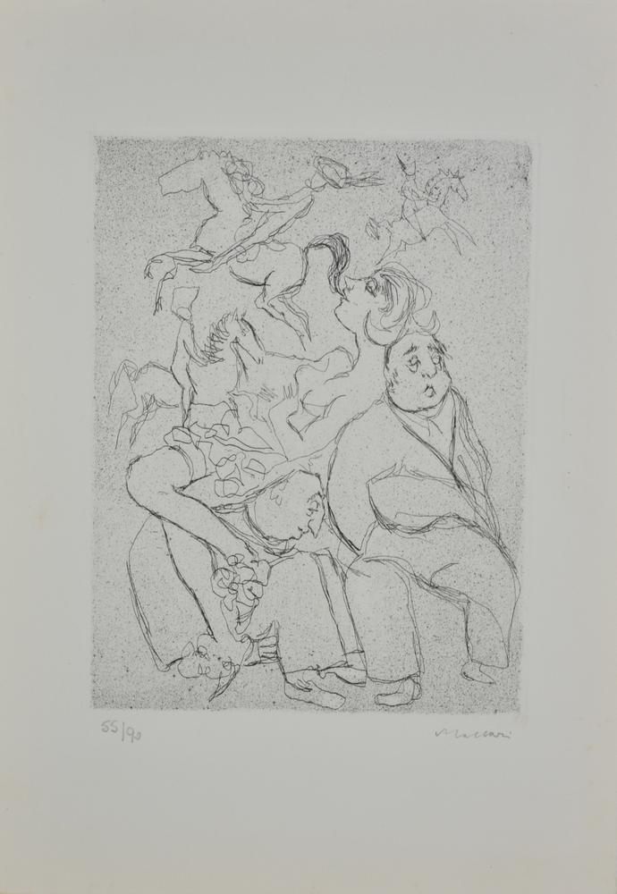 Mino Maccari SENZA TITOLO incisione su carta, cm 49x35 (lastra cm 32,6x24,4) esemplare 55 di 90 sul fronte: firma