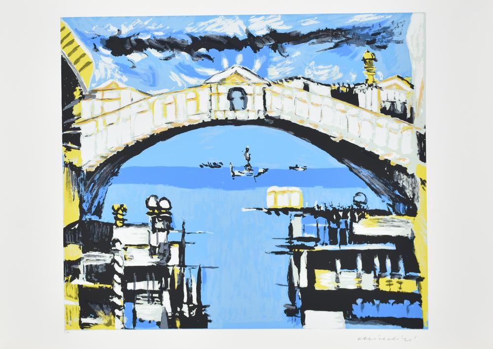 Remo Brindisi Venezia. Ponte di Rialto serigrafia su carta, cm 50x70 esemplare prova d'autore sul fronte: firma