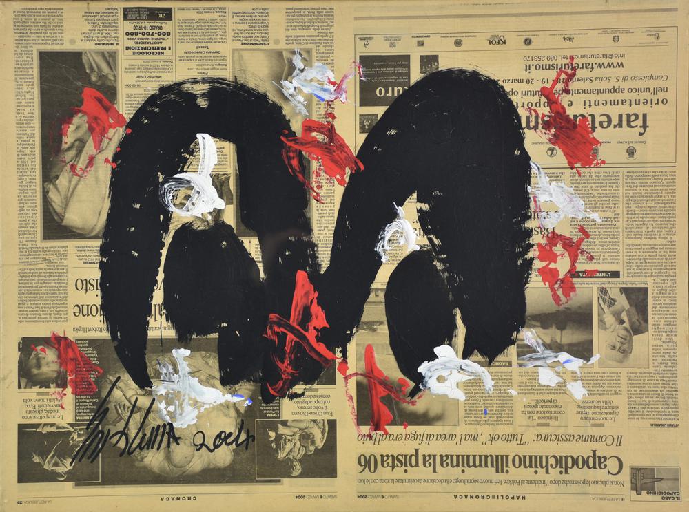 Salvatore Emblema Senza titolo olio su carta di giornale applicato su tela,...