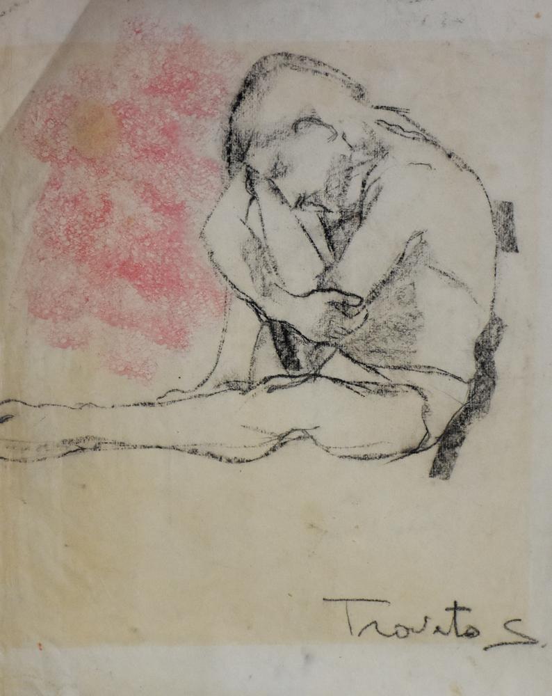 Lotto 279 | Sebastiano Trovato Figura carboncino su carta, cm 49,5x37 sul fronte: firma