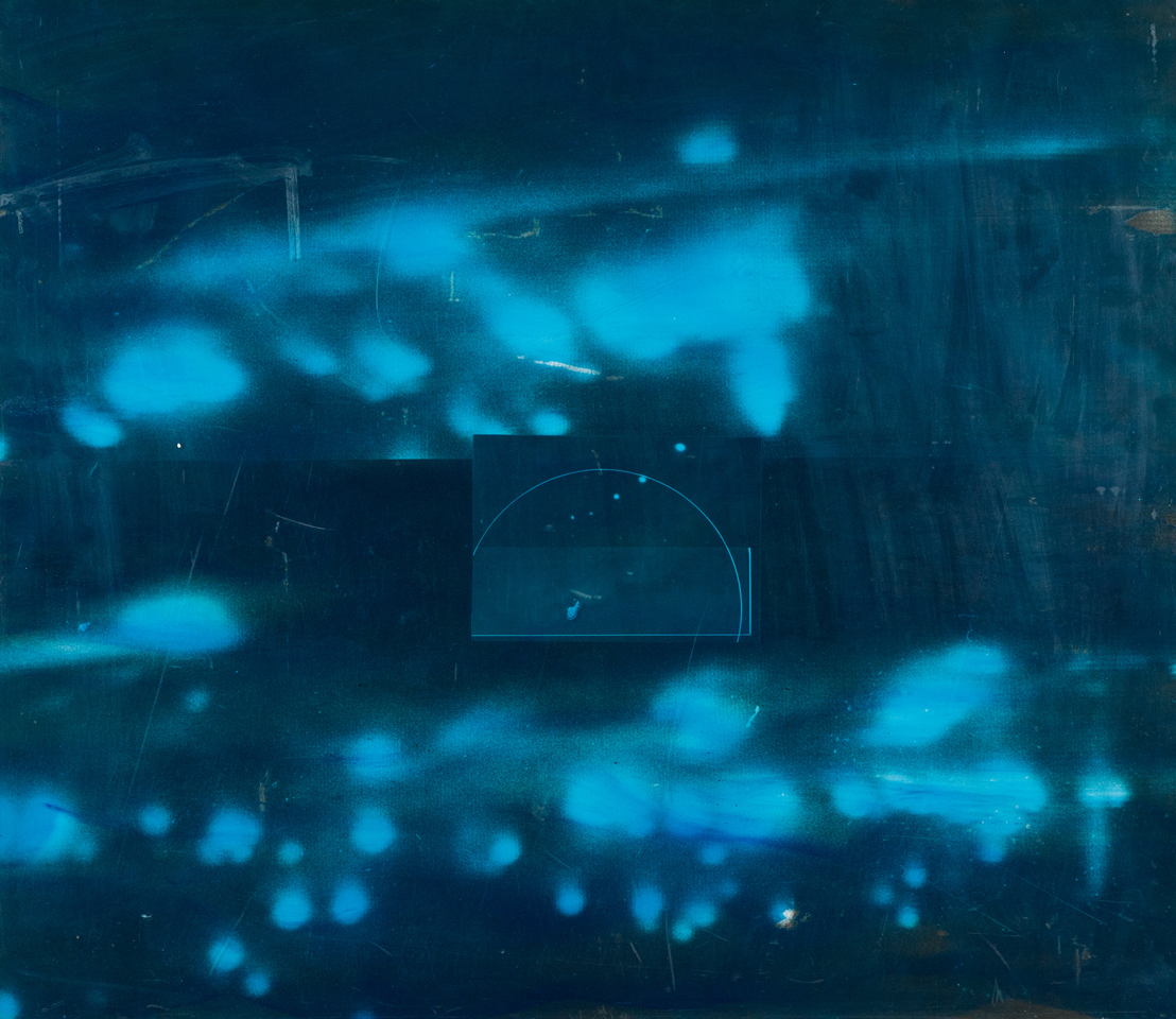Marco Nereo Rotelli Senza titolo, 1990 Vetro dipinto su foto dipinta, cm. 66x76 Sul verso: firma e data. Autentica dell'Artista su foto.