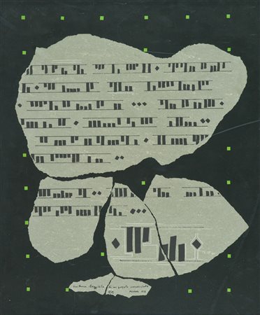 Bruno Munari Scrittura illeggibile di un popolo sconosciuto, 1978 Serigrafia su carta riportata su faesite, cm. 60x50, es. 17/19 Firma, titolo, data e tiratura in basso al centro. Sul verso: etichetta "Arte Struktura", Milano, con descrizione.