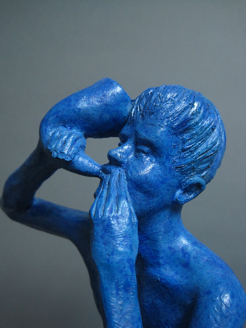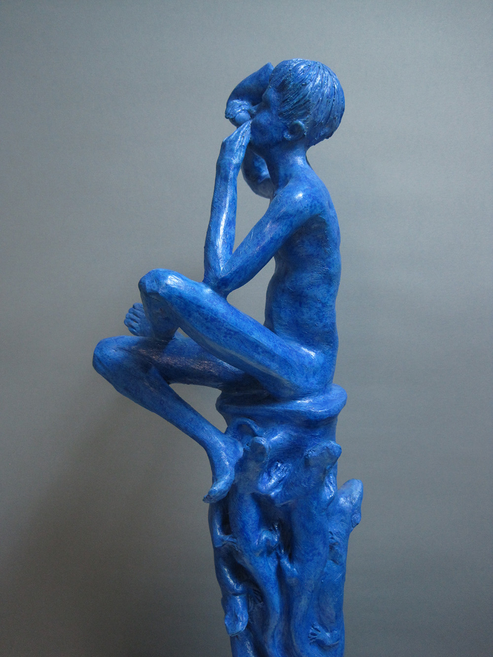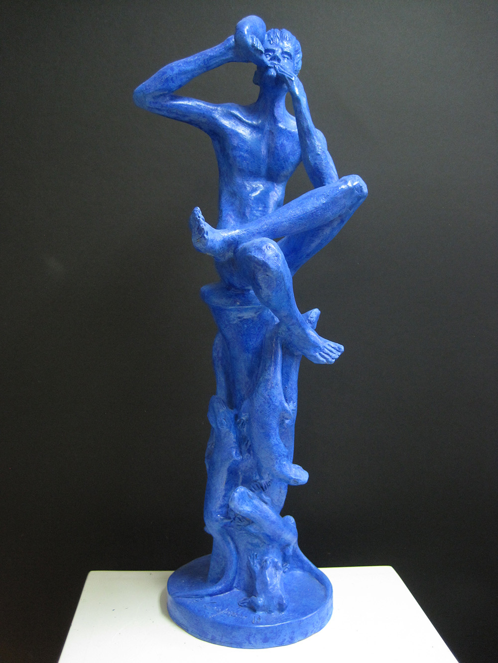 Paolo Camporese, L'incantatore di anuri e urodeli, 2013 Terracotta policroma, 49cm x 15cm x 12cm. Autentica su foto dell'artista