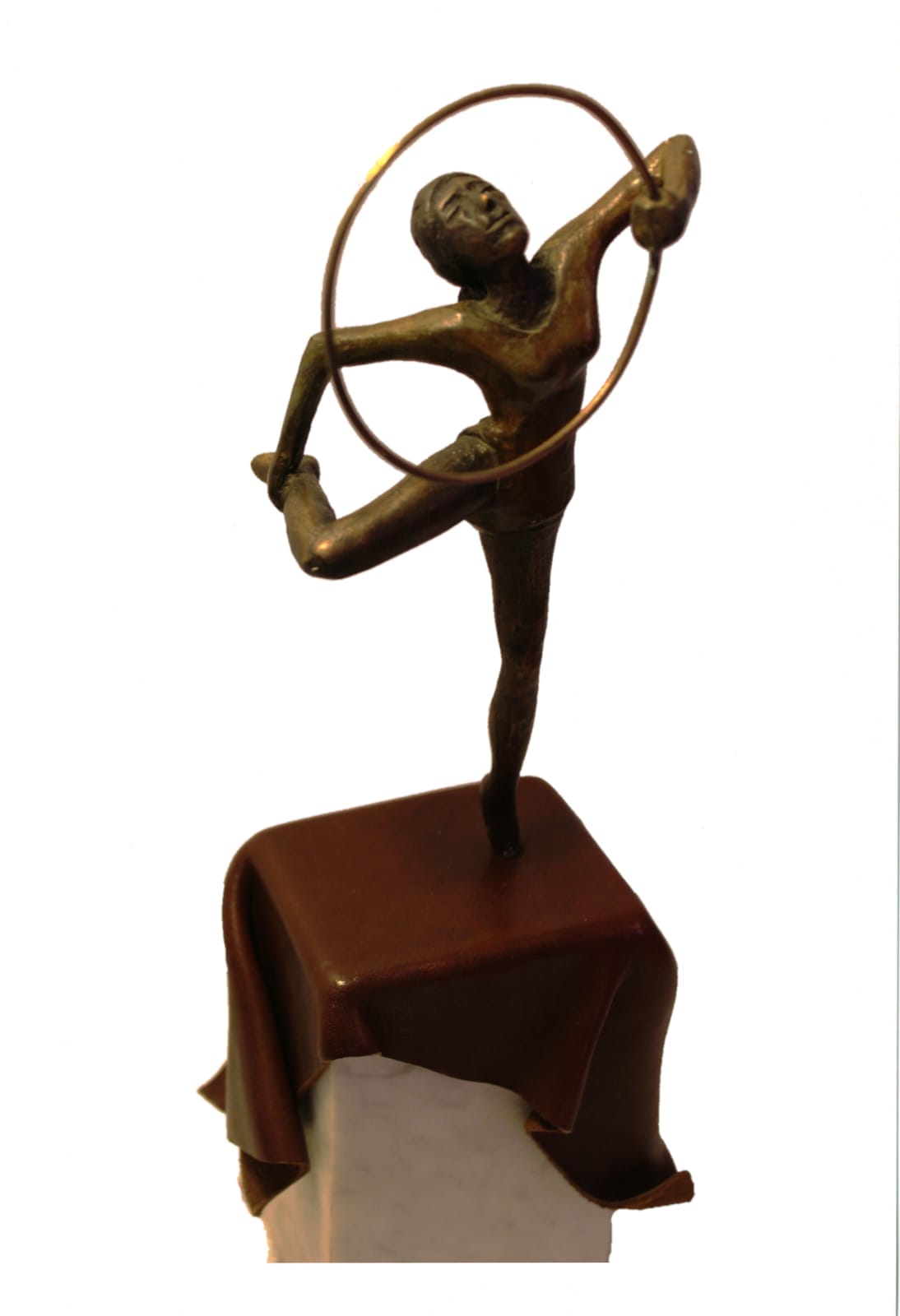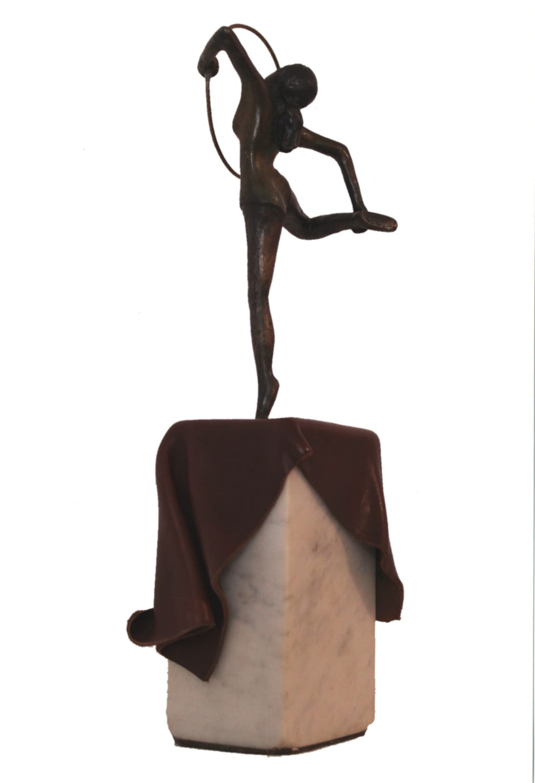 Claudio Caporaso, Ballerina con cerchio, 2011 Bronzo marmo e cuoio, 32cm x 11cm x 9cm. Autentica su foto dell'artista