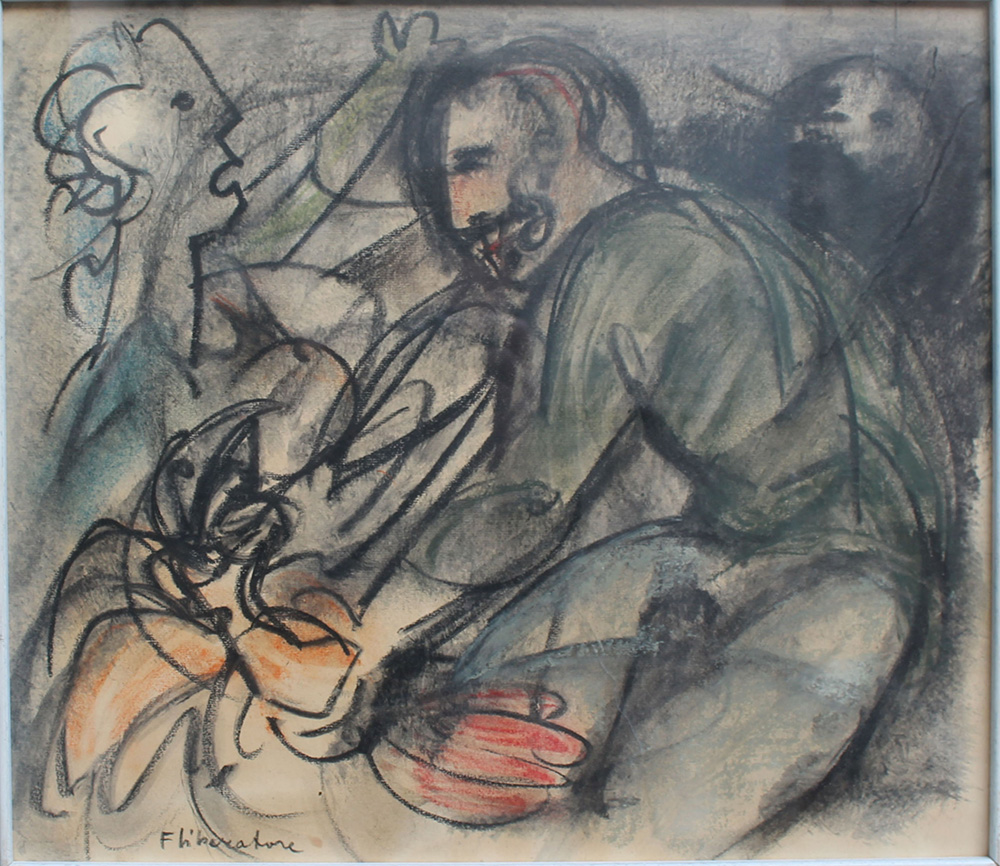Fausto Maria Liberatore, Figure, 1979 Mista , 38cm x 43cm. Autentica su foto...