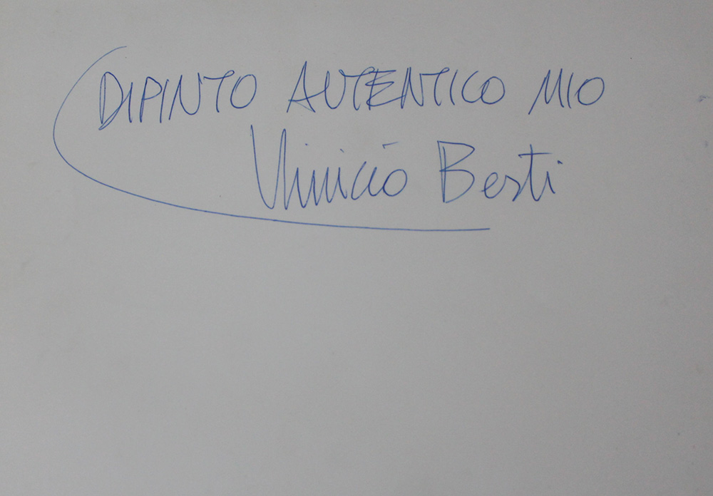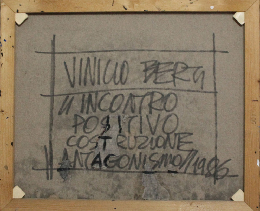 Vinicio Berti, Incontro positivo costruzione antagonismo, 1986 Acrilico su tela, 50cm x 60cm. Autentica su foto dell'artista