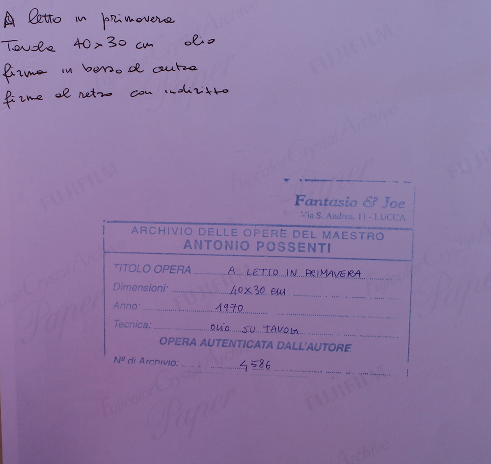 Antonio Possenti, A letto in primavera, 1970 Olio su tavola, 40cm x 30cm....
