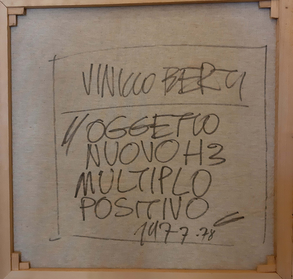 Vinicio Berti, Senza titolo, 1977 - 1978 Tempera Morgan su tela, 70cm x 70cm. Autentica su foto dell'artista. L'opera sarà pubblicata nel primo volume del catalogo generale