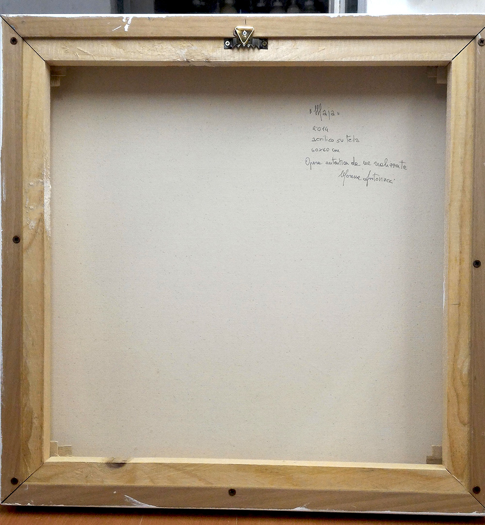 Morena Antonucci, Maja, 2014 Acrilico su tela, 60cm x 60cm. Foto autenticata dall'artista del fronte e del retro dell'opera