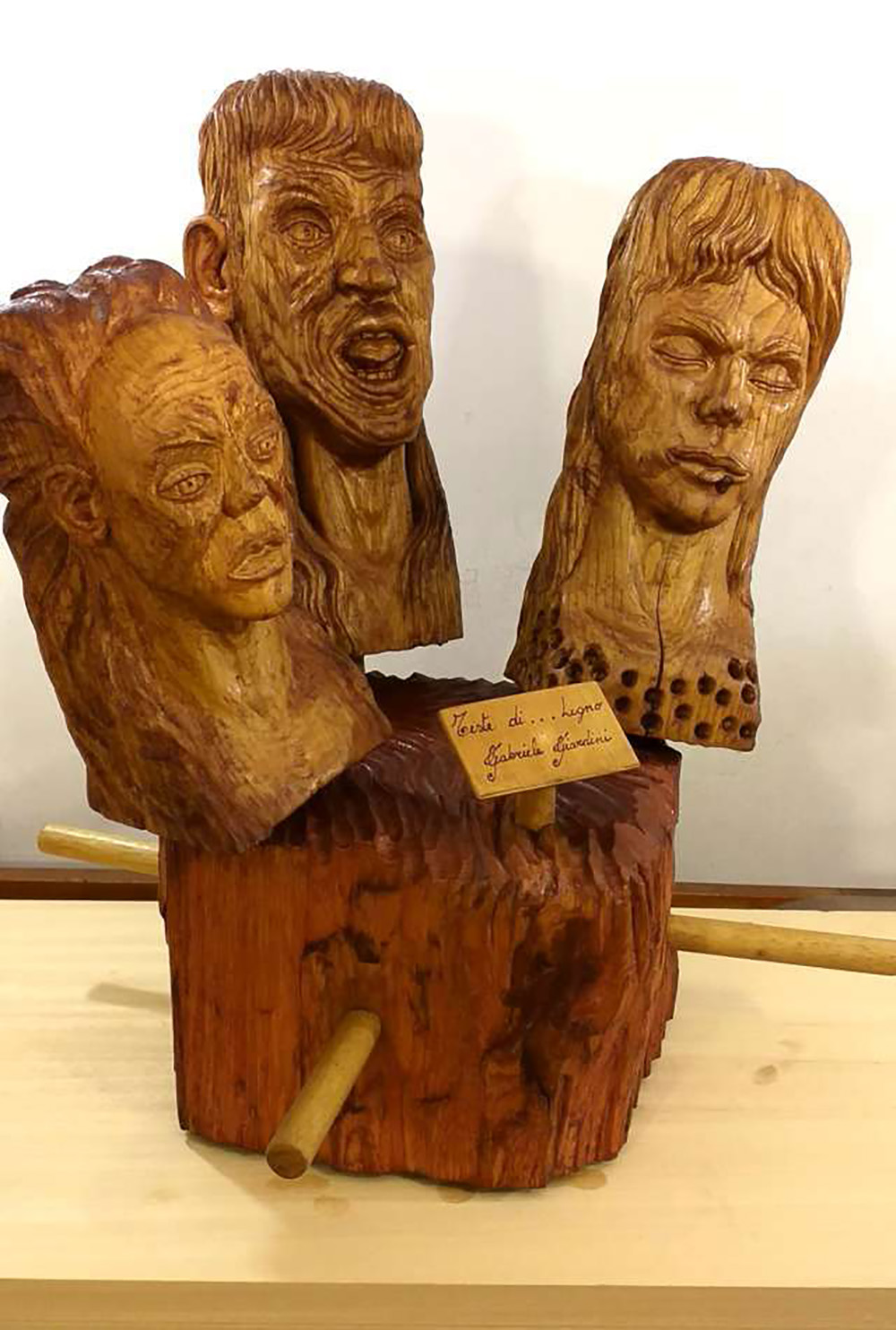 Lotto 118 | Gabriele Giardini, Teste di … legno, 2008 Scultura in legno, 58cm x 48cm x...