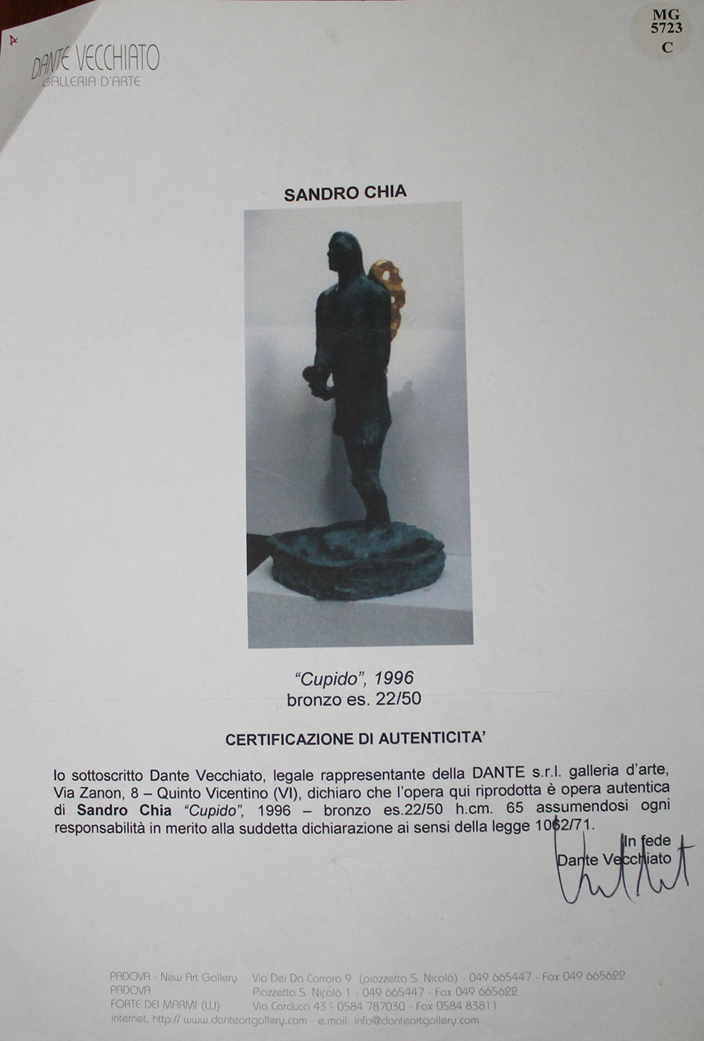 Sandro Chia, Cupido, 1996 Bronzo multiplo esemplare 22 di 50, 65cm. Archivio...