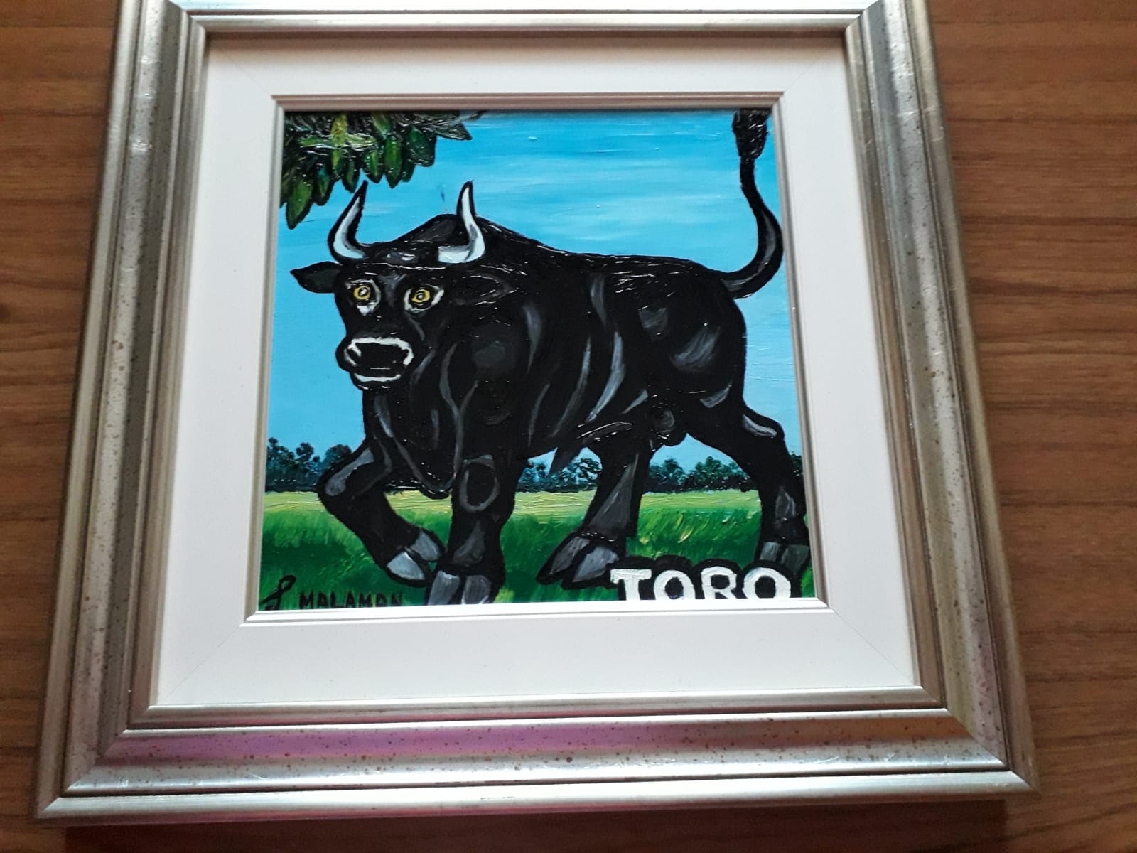 Luigi "Billy" Malaman, Toro, 2000 Tecnica mista su vera pelle, 40cm x 40cm. Pubblicato su volume Luigi "Billy" Malaman il Pittore dei Reali di Spagna