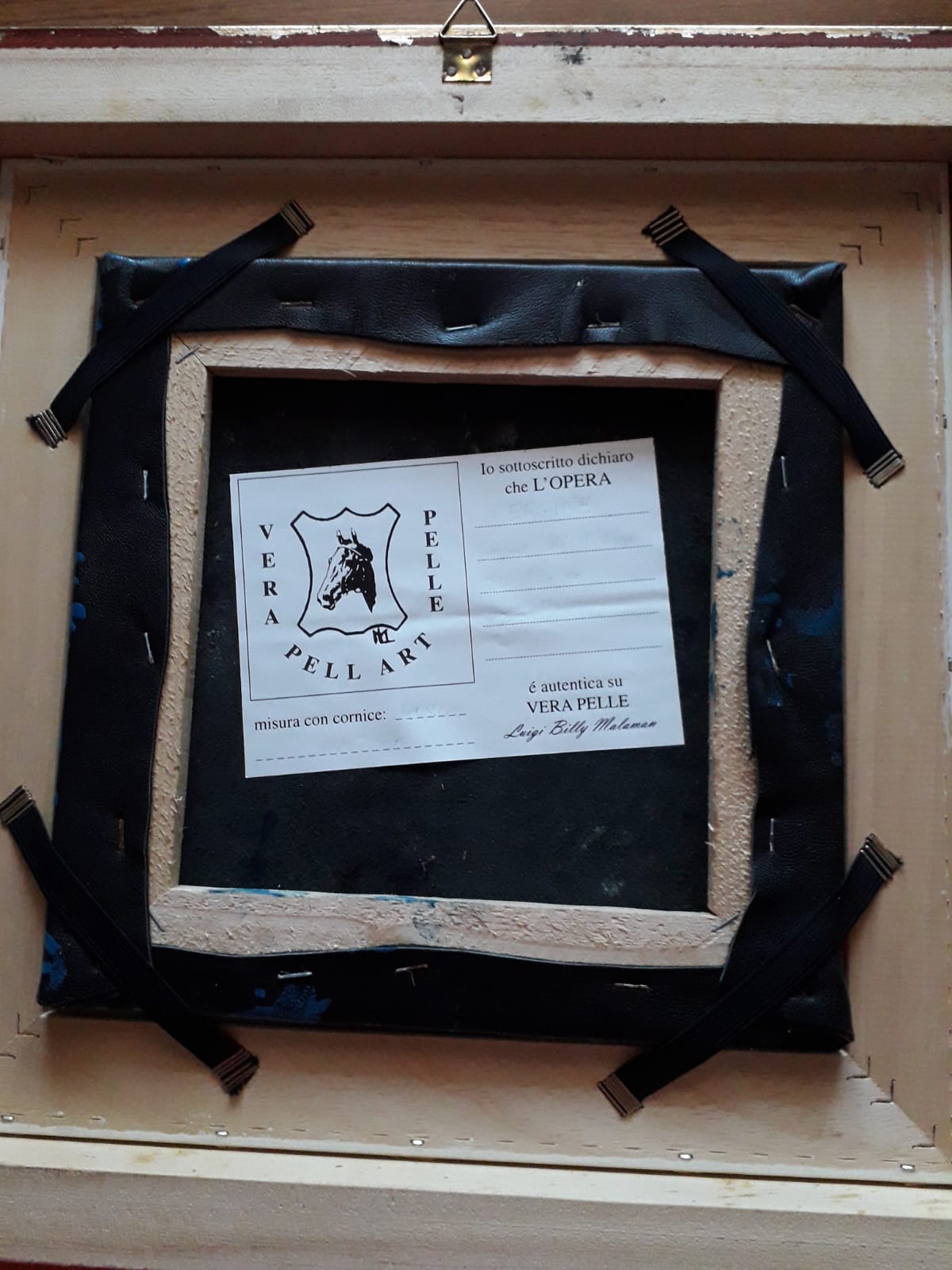 Luigi "Billy" Malaman, Vergine, 2000 Tecnica mista su vera pelle, 40cm x 40cm. Pubblicato su volume Luigi "Billy" Malaman il Pittore dei Reali di Spagna