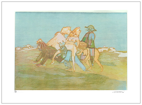 MINO MACCARI Siena 1898 – Roma 1989 Senza titolo 1973 Xilografia a colori es.5/59. Firma in b. a d. (50 x 68 foglio – 38 x 55 xilo.) (al centro è raffigurato Ennio Flaiano) Pubbl.: “Mino Maccari Catalogo ragionato delle incisioni” a cura di Francesco Meloni, Electa Editrice, Milano, 1979, Volume secondo, p.443, n.2196. base: 50