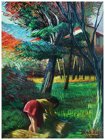 DENDI DINO Livorno 1922 – Livorno 1996 Contadinella 1964 Olio su tavola 39 x 29. Firma e data in b. a d., titolo sul verso. base: 100