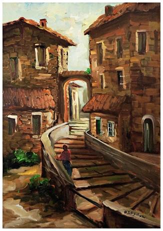 DOMENICO SELO SELOSKI Napoli 1924 – Livorno 1981 Scalinata 1975 Olio su tela 70 x 50. Firma in b. a d.; sul verso etichetta “Certificato di autenticità” dell’autore. base: 80