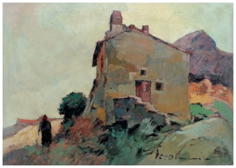 CARLO DOMENICI Livorno 1898 – Valdana di Portoferraio 1981 Casolare Olio su faesite 35 x 50. Firma in b. a d. e sul verso. Pubbl.: Catalogo Asta 143 I° Galleria Farsetti Arte, Prato, 18 aprile 2008, n.235. A OFFERTA