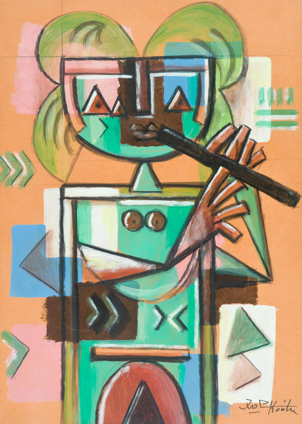 Ibrahim Shaban Likmetaj Kodra Senza titolo Tecnica mista su cartoncino applicato su tela, cm. 70x50 Firmato in basso a destra. Sul verso: scritto di Autenticità. Certificato di Provenienza "Galleria d'Arte Lemmetti", Viareggio.