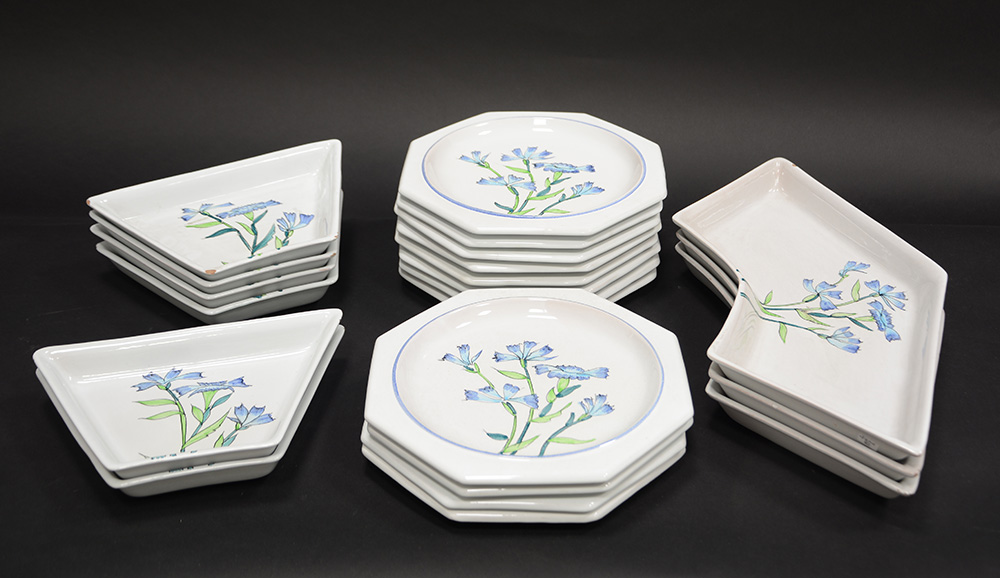 Manifattura italiana. Lotto composto da dodici piatti piani, sei da antipasto...
