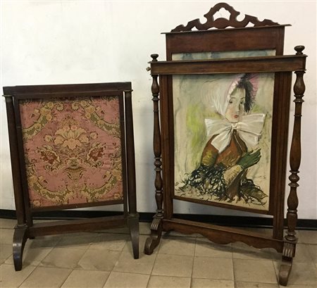 Due parafuoco del secolo XIX di cui uno con pannello dipinto (difetti e mancanze)