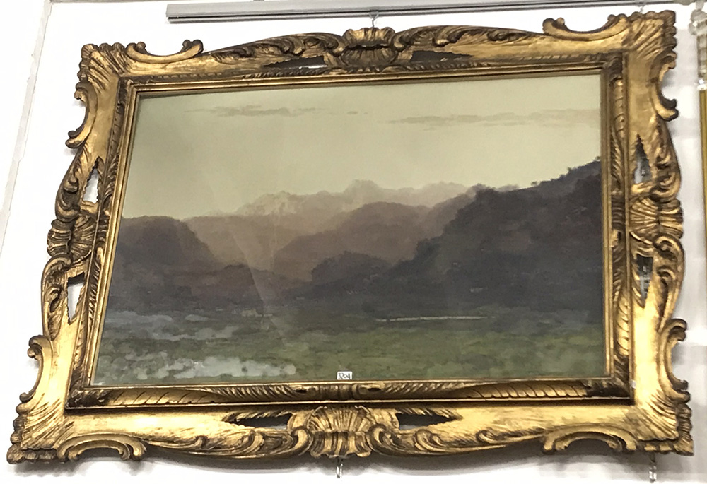 Firma indecifrata "Poesia del mattino" olio su compensato (cm 70x100) Firmato in basso a destra, titolato al verso. In cornice