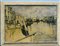 Artista di fine secolo XIX, ''Scorcio di canale con imbarcazioni'' acquerello...