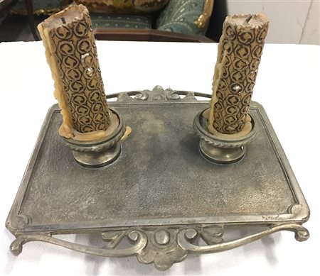Portacandele in mettallo argentato con bordo sagomato e traforato